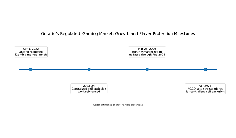The announcement fits into a wider regulatory path rather than appearing in isolation. Ontario’s regulated iGaming market launched on April 4, 2022, and expanded quickly into a large multi-operator environment. As that market matured, the case for stronger market-wide player protection tools became harder to ignore.